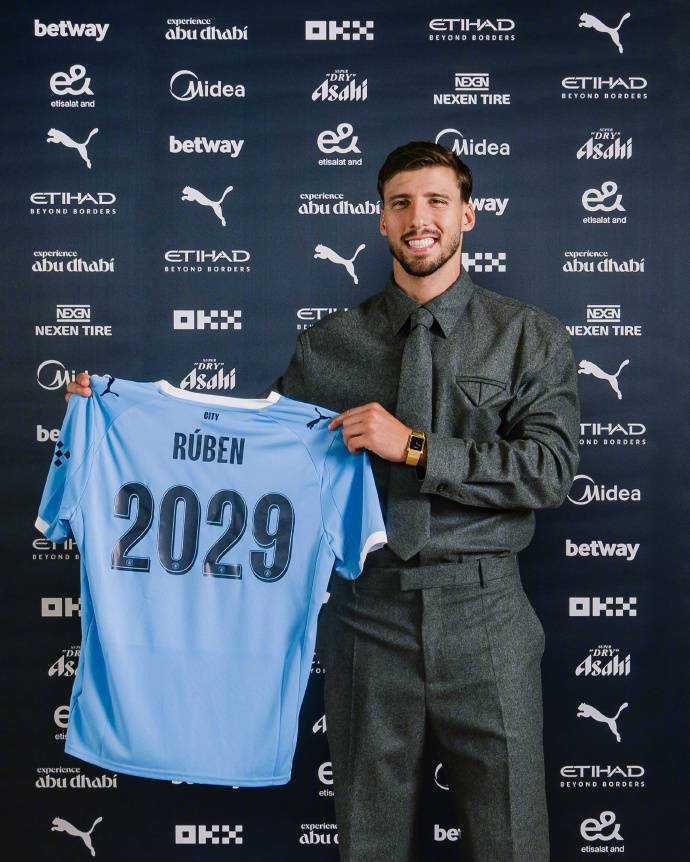 曼城与葡萄牙后卫鲁本-迪亚斯续约2年 新合同至2029年